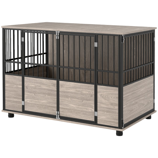 PawHut Dog Crate Furniture, Decorative Dog Kennel Indoor End Table with Double Doors, Multi-Purpose Pet Crate for Small to Large Dogs up to 88 lb, 46"L, Walnut Wood Finish