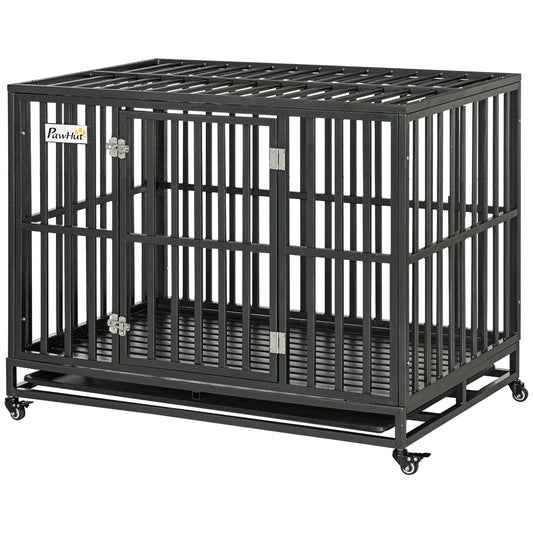 PawHut Heavy Duty Dog Crate Metal Kennel and Cage Dog Playpen with Lockable Wheels, Slide-out Tray and Anti-Pinching Floor, 45" x 29.5" x 35"