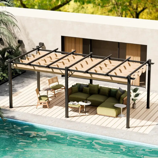 10 X 12 FT Outdoor Retractable Pergola, Metal Patio Pergola with Retractable Sun Shade Canopy and Aluminum Frame for Patio