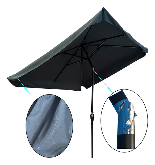10 x 6.5ft Rectangular Patio Umbrella Outdoor Market Umbrellas with Crank and Push Button Tilt for Garden Swimming Pool Market