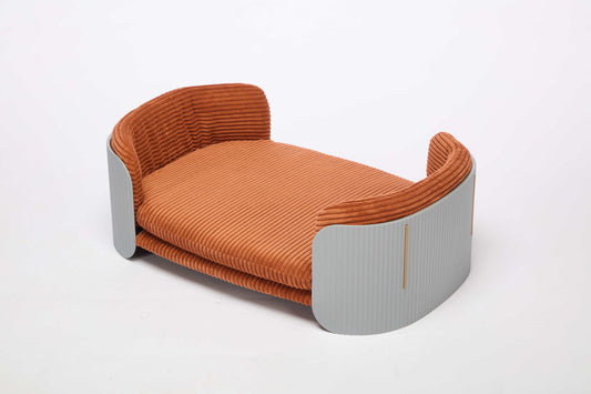 Scandinavian style Cat Couch Bed, Pet Sofa for Indoor Cats PP Indoor Pet Furniture Elevated Cat Beds with Removable Mattress Cover Suitable for Kitty, Puppy or Small Animal Brand Design Grey+Brown