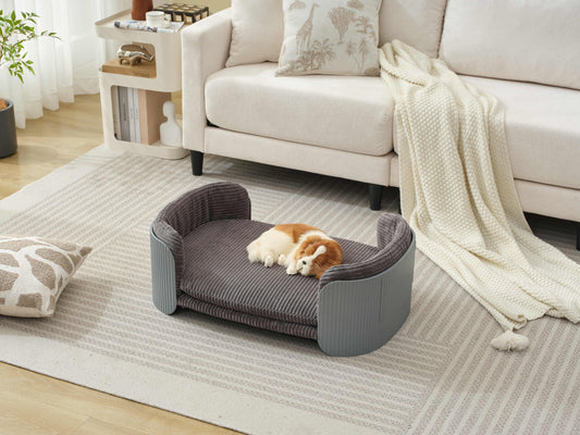 Scandinavian style Cat Couch Bed, Pet Sofa for Indoor Cats PP Indoor Pet Furniture Elevated Cat Beds with Removable Mattress Cover Suitable for Kitty, Puppy or Small Animal Brand Design Grey+Grey
