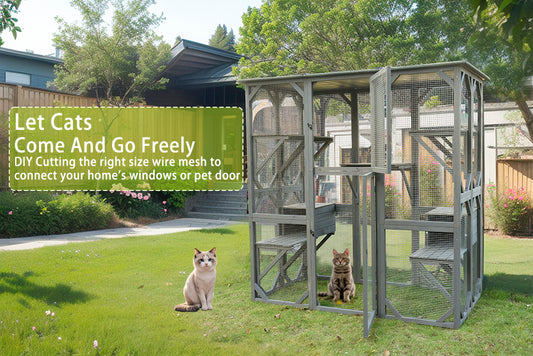 Catio Outdoor Cat Enclosure Cat Catio Cat House, Cat Cage Condo Indoor Playpen Kitty House Shelter with Multi Platforms, Waterproof Roof, Pull-Out Tray (71.3" L x 38.4" W x 70.7" H)