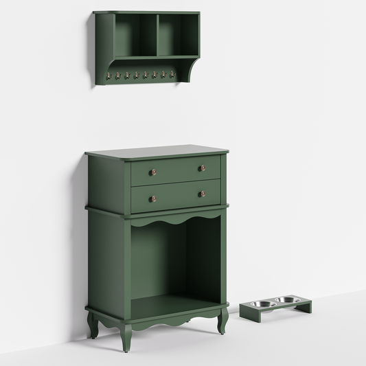 Pet Storage Cabinet with Wall Mounted Cabinet, 2 Drawers and Semi-Open Space, Hidden Cat Litter Box, Multi-Functional End Table-Green
