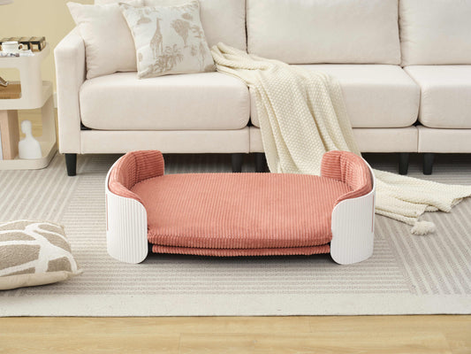 Scandinavian style Cat Couch Bed, Pet Sofa for Indoor Cats PP Indoor Pet Furniture Elevated Cat Beds with Removable Mattress Cover Suitable for Mid or Large Animal Brand Design White+Pink