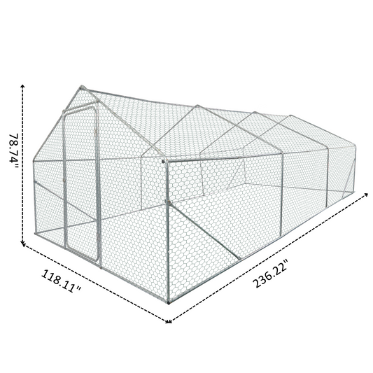 9.94 ft. x 25.68 ft. Galvanized Large Metal Walk in Chicken Coop Cage Farm Poultry Run Hutch Hen House