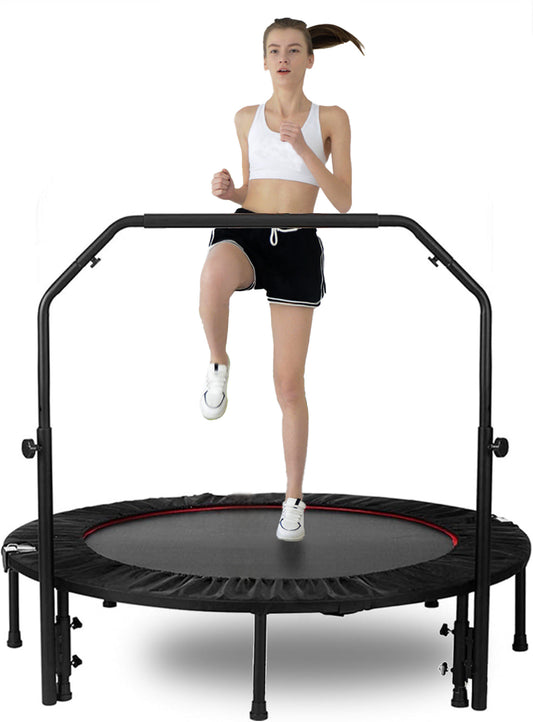 48" Foldable Mini Trampoline Max Load 300lbs, Fitness Rebounder with Adjustable Foam Handle, Exercise Trampoline for Adults Indoor/Garden Workout, Xmas Christmas Gift