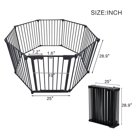 150" Adjustable Safety Gate 6 Panels Play Yard Metal Doorways Fireplace Fence Christmas Tree Fence Gate for House Stairs Gate prohibited area fence