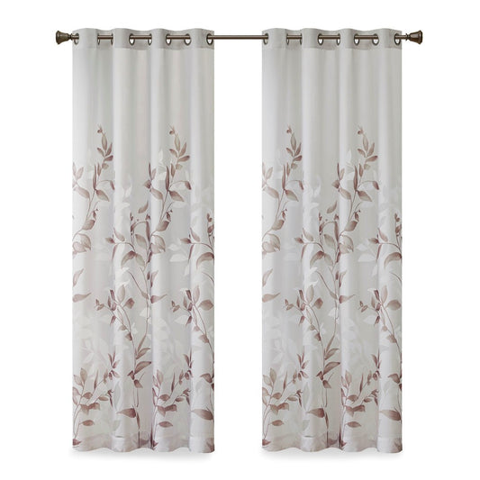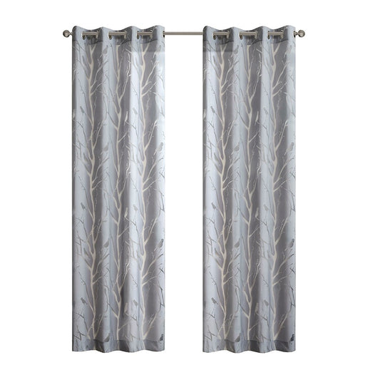 Grommet Top Sheer Bird on Branches Burnout Window Curtain(Only 1 Pc Panel)