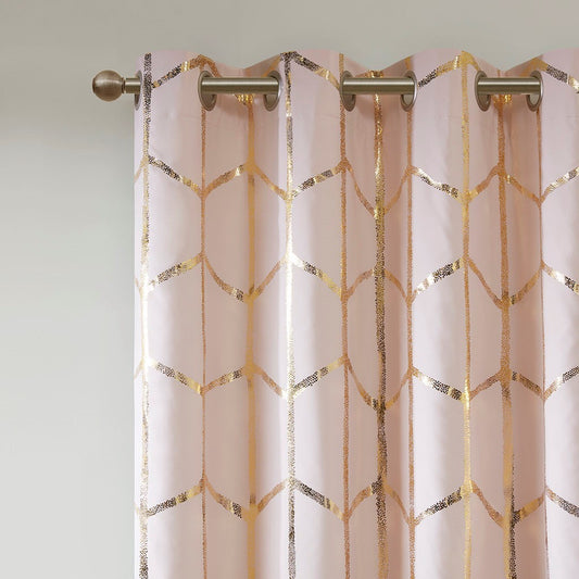 Total Blackout Metallic Print Grommet Top Curtain Panel(Only 1 Pc Panel)