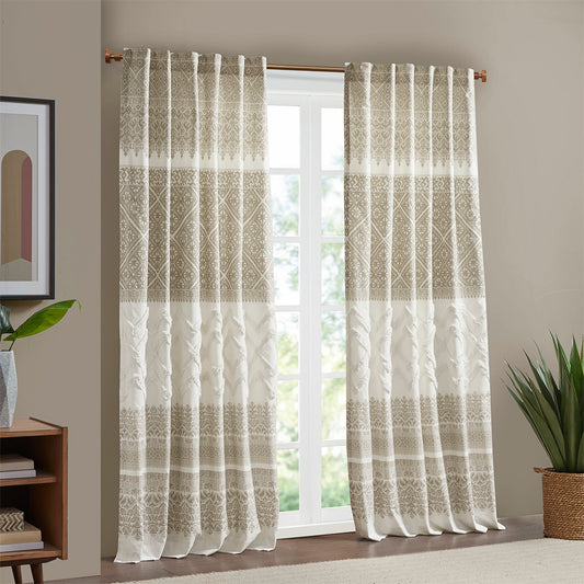 - 100% cotton printed with chenille tufted detail window curtain panel