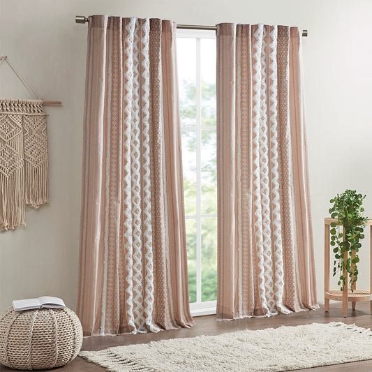 Cotton Printed Curtain Panel with Chenille Stripe and Lining Blush 50x84'