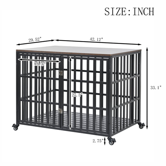 42" Heavy Duty Dog Crate for Large Medium Dogs, Furniture Style cage with 4 Lockable Wheels and 2 Locks, Decorative Pet House Wooden Cage Kennel Furniture Indoor