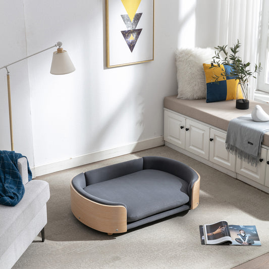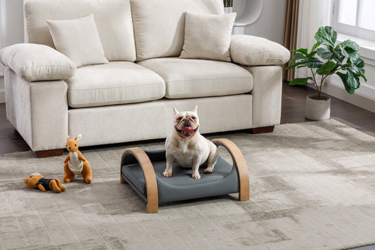 Lily Cat Bed Dog Bed Pet Sofa With Solid Wood frame, Cat Scratch Resistant PU Cushion,Mid Size,Dark Grey
