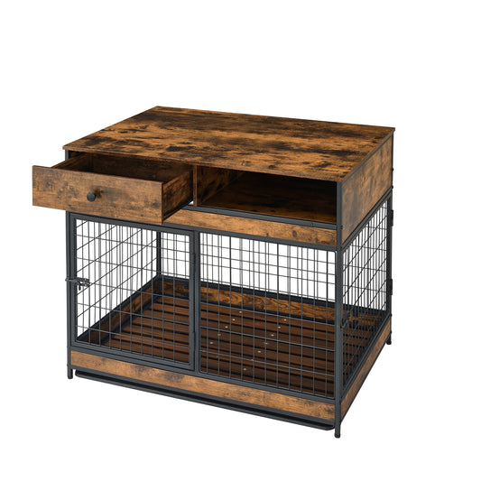 Furniture Dog Cage Crate with Double Doors. Antique Brown,38.78'' W x 27.36'' D x 32.17'' H.