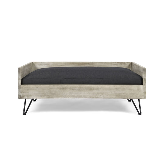 Scandinavian style Elevated Dog Bed Pet Sofa With Solid Wood legs and Bent Wood Back, Velvet Cushion,Large Size