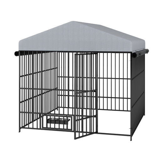 Large Dog Kennel Outdoor Pet Pens Dogs Run Enclosure Animal Hutch Metal Coop Fence with Roof Cover(6.6'L x 6.6'W x 6.4'H)
