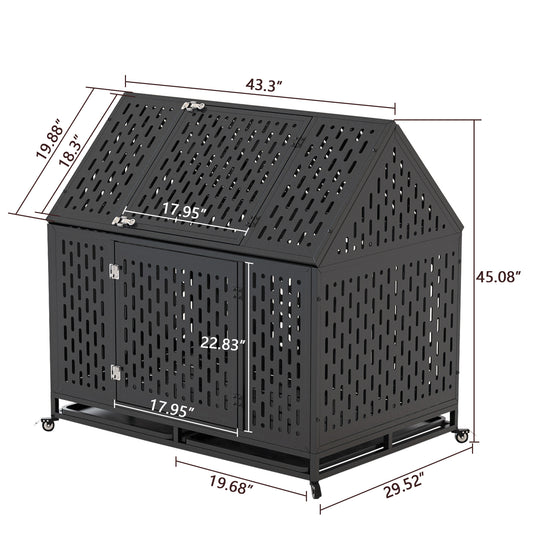 45" Heavy Duty Dog Crate Indestructible Pet Dog Cage Crate Kennel with Roof Top 2 Doors Removable Trays, Lockable Wheels, Escape-Proof for High Anxiety Large/Extra Dogs
