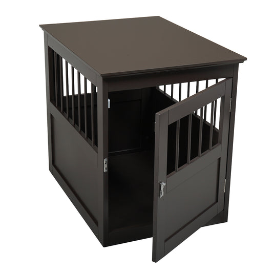 Wood Dog Crate Furniture, End Table Designed Dog Kennel with Side Slats, Brown