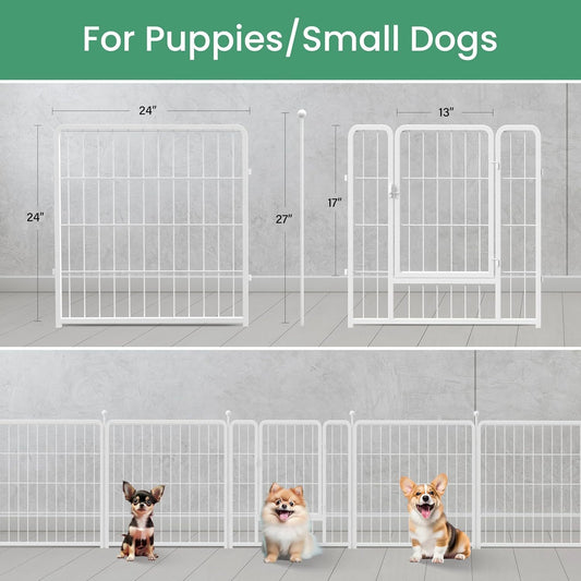 Dog Playpen, 24" Height 16 Panels Fence with Anti-Rust Coating, Metal Heavy Portable Foldable Dog Pen for Small/Medium Dogs RV Camping, White