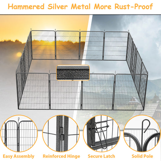 Dog Playpen Outdoor, 16 Panels Dog Pen 40" Height Dog Fence Exercise Pen with Doors for Large/Medium/Small Dogs, Portable Pet Playpen for Yard, RV, Camping, Hammer Paint Finish
