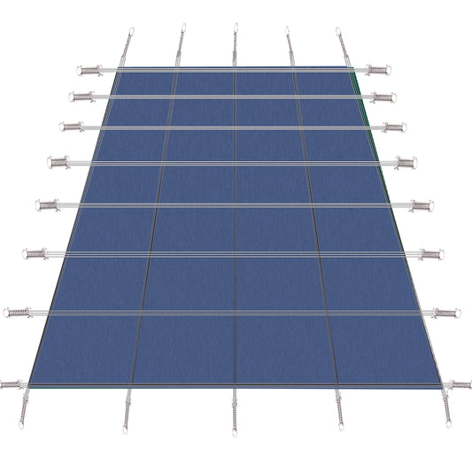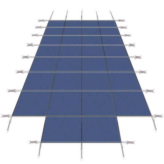 Pool Safety Cover, Fits 20x40ft Rectangular Inground Winter Swimming Pools, with 4x8ft Center End Step, Triple Stitched, High Strength Mesh PP, Great Rain Permeability, Installation Hardware,Blue Mesh