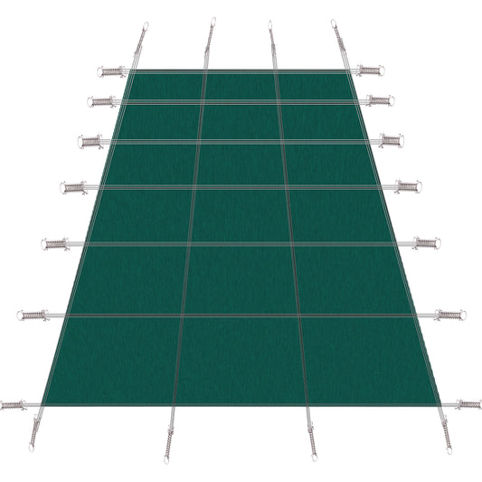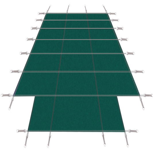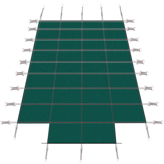 Pool Safety Cover, Fits 20x40ft Rectangular Inground Winter Swimming Pools, with 4x8ft Center End Step, Triple Stitched, High Strength Mesh PP, Great Rain Permeability Installation Hardware,Green Mesh