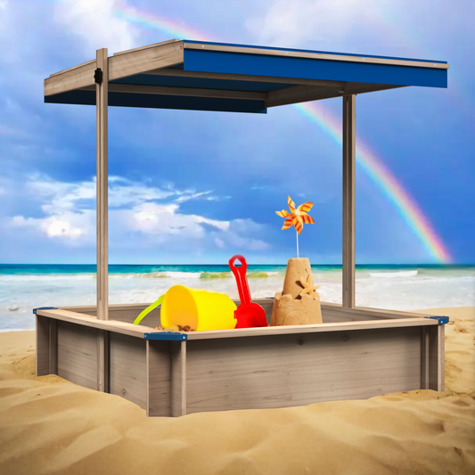 Children's Wooden Sandbox with Adjustable Canopy, Sand box with cover for Garden, Sand Pit for Kids Wood Playset Beach Patio Outdoor Backyard - Upgrade Retractable, Natural