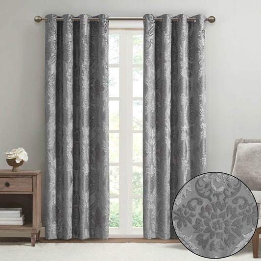 Knitted Jacquard Paisley Total Blackout Grommet Top Curtain Panel(Only 1 Pc Panel
