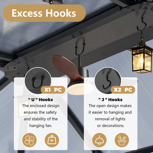 10x12FT Hardtop Gazebo Double Roof Canopy Outdoor with Netting and Curtains, Aluminum Frame Polycarbonate Roof Garden Tent for Patio, Backyard, Deck, and Lawn