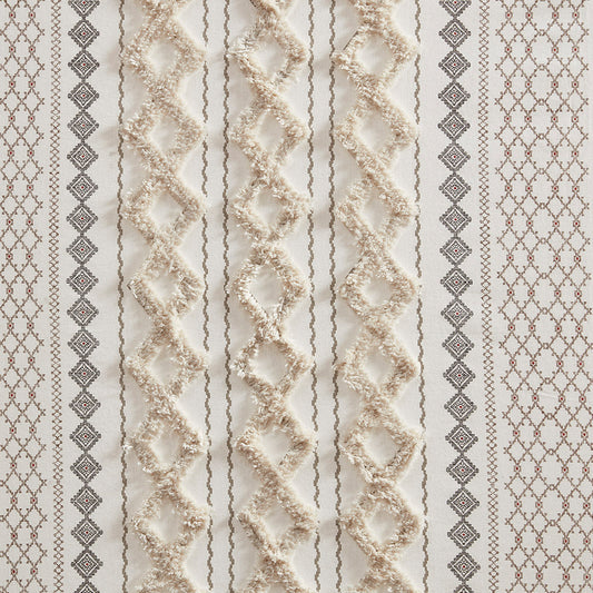 Cotton Printed Curtain Panel with Chenille Stripe and Lining Ivory 50x84'