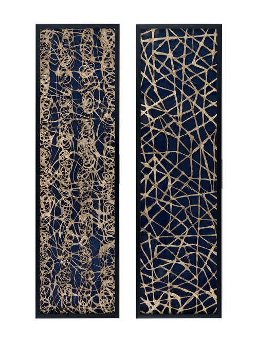 15.5' x 55' Rectangular Shaped Rice Paper Shadow Box Decor Wall Art, Transitional style Wall Decor, Set of 2