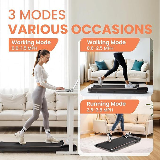 Walking Pad Under Desk Treadmill 3 in 1 Portable Folding Walking Jogging Running Machine with Remote Control & LED Display for Home/Office, Larger Running Area, Quiet for Fitness in Small Spaces