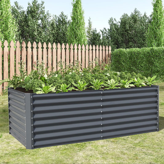 8x4x1 ft Galvanized Raised Garden Bed, Outdoor Planter Garden Boxes Large Metal Planter Box for Gardening Vegetables Fruits Flowers, Gray