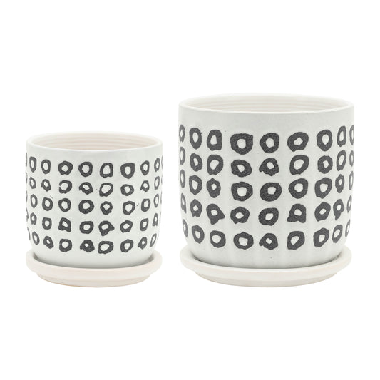 S/2 5/6" AZTEC PLANTER W/ SAUCER, BLACK