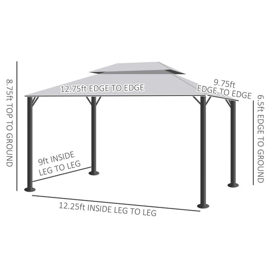 Outsunny 10' x 13' Patio Gazebo, Outdoor Gazebo Canopy Shelter with Netting and Curtains, Aluminum Frame for Garden, Lawn, Backyard and Deck, Gray