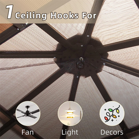 10'x12' Hardtop Gazebo, Permanent Outdoor Gazebo with Polycarbonate Double Roof, Aluminum Gazebo Pavilion with Curtain and Net for Garden, Patio, Lawns, Deck, Backyard(Brown)
