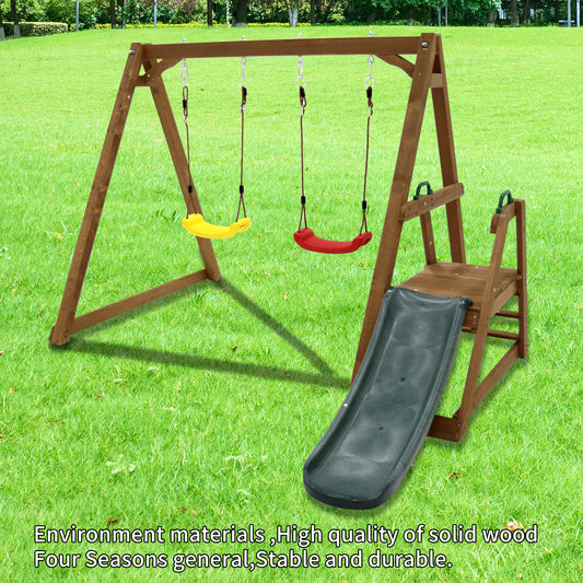 500 lbs 7 in 1 Swing Set for Kids Backyard Outdoor A-Frame Heavy-Duty Metal Swing Sets with Slide, 2 Swing Seats, 1 Climbing Net & Ladder, 1 Gym Ring, 1 Basket