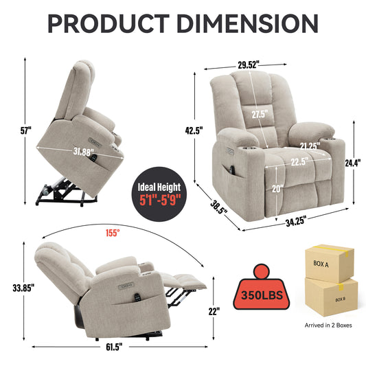 Power Lift Recliner Chair with Massage Elderly, Overstuffed Wide Recliners, Heavy Duty and Safety Motion Reclining Mechanism