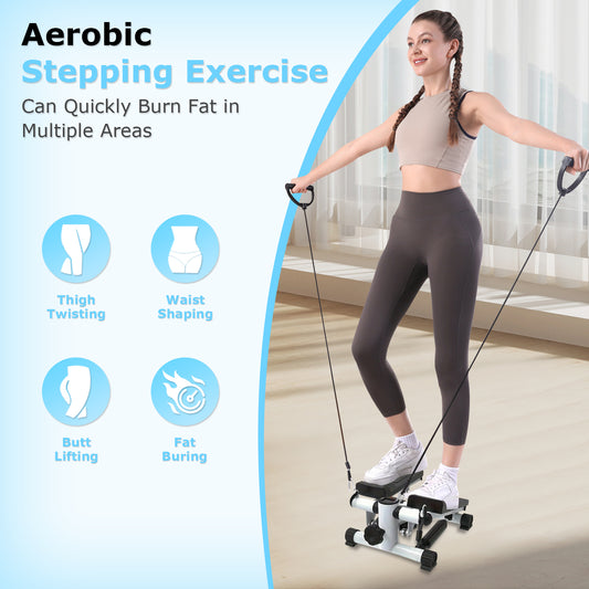Mini Stepper with Resistance Bands, Twist Stair Steppers for Exercise at Home, Portable Full Body Workout Stepper Machine Adjustable Foot Stepper for Fitness