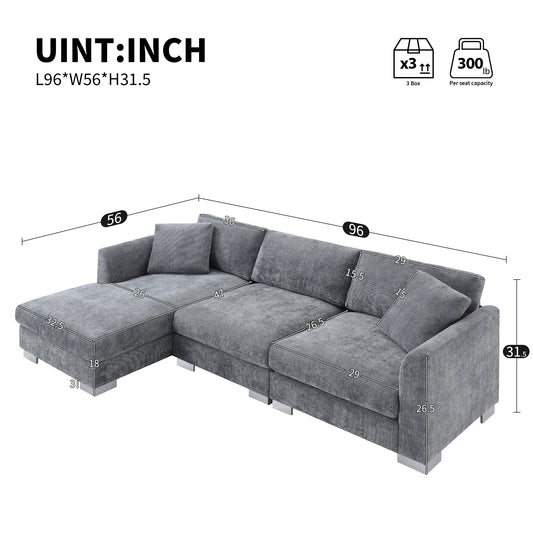 [SantaChoice] 96*56" Modern Cloud Sectional Sofa,L-shaped Luxury Couch Set with 2 Free pillows,4-seat Chenille Indoor Furniture with Oversized Chaise for Living Room,Apartment,Office,3 Colors
