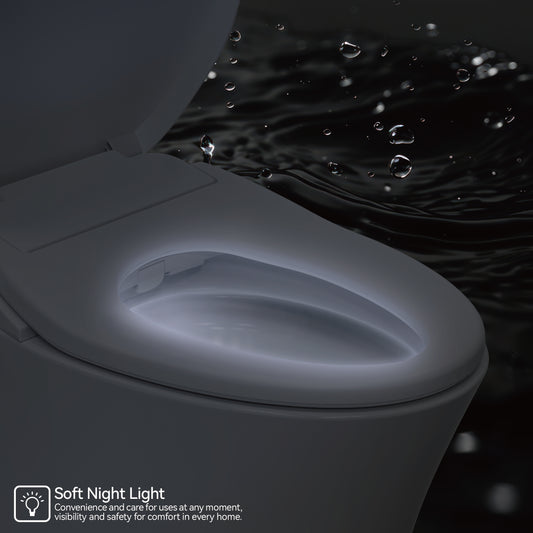 Electric Cushion Toilet Seat, Warm Water with Air Dryer, Heated Seat with Sensor and Slow Closing Cover, Strong and Weak Massage Cleaning, Night Light, Remote Control,