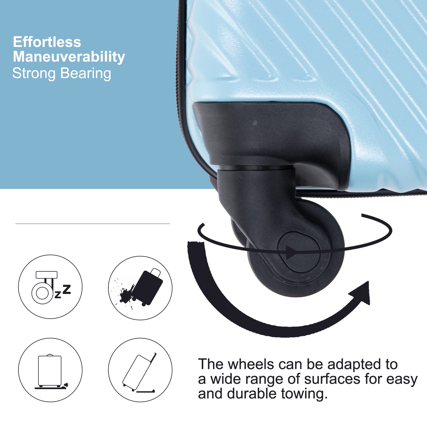 3 Piece Luggage Sets PC+ABS Lightweight Suitcase with Two Hooks, Spinner Wheels, (20/24/28) Aqua Blue