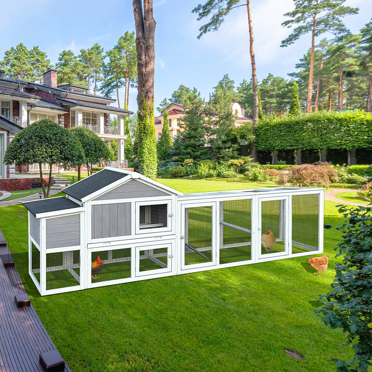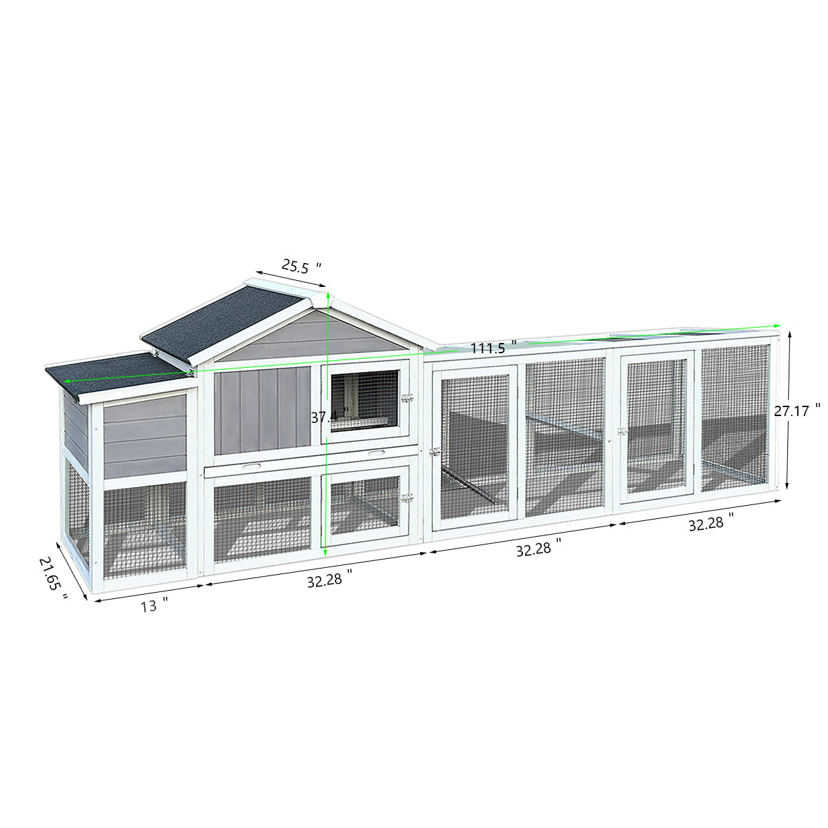 111.5" Wooden Chicken Coop, Large Outdoor Hen House with Nesting Box Poultry Cage, Rabbit Hutch Bunny Cage , Waterproof UV Panel for Outdoor Backyard