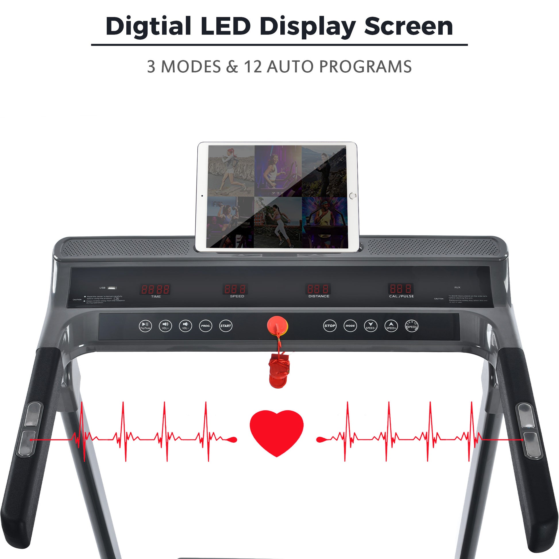 - Multifunctional LED Display--Tracks your performance including time, step, speed, distance, heart rate and calories burnt, promising a superior and effective home treadmill workout.