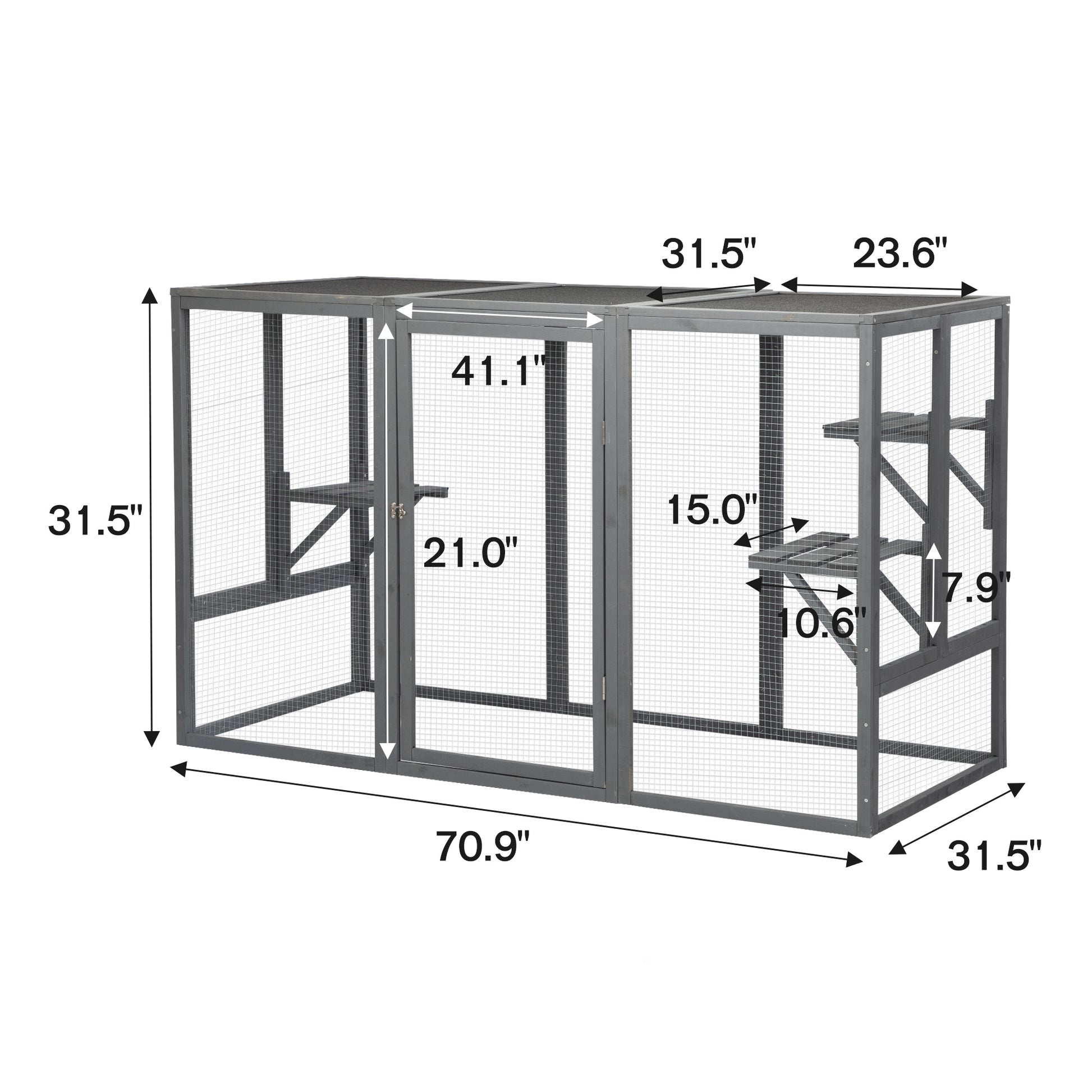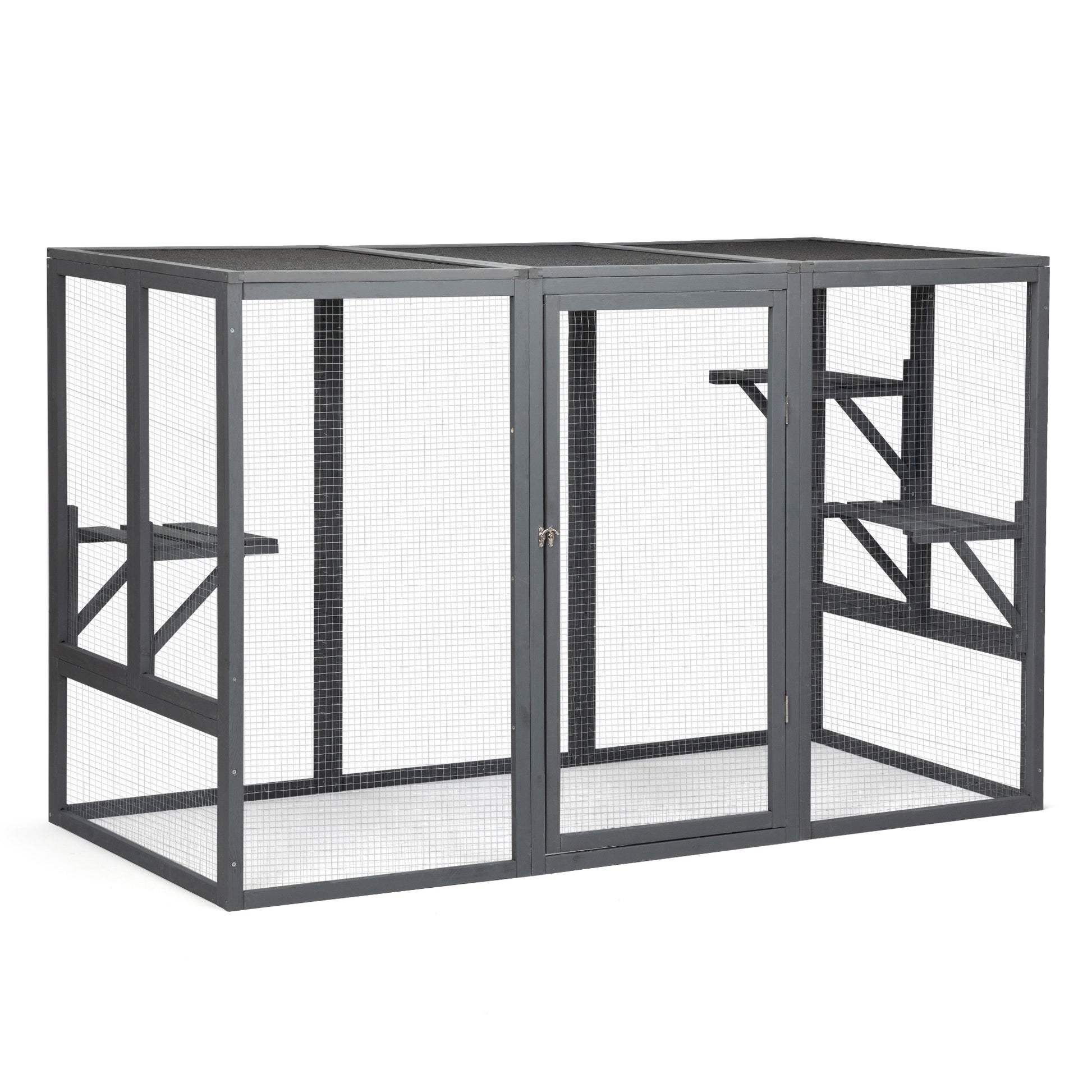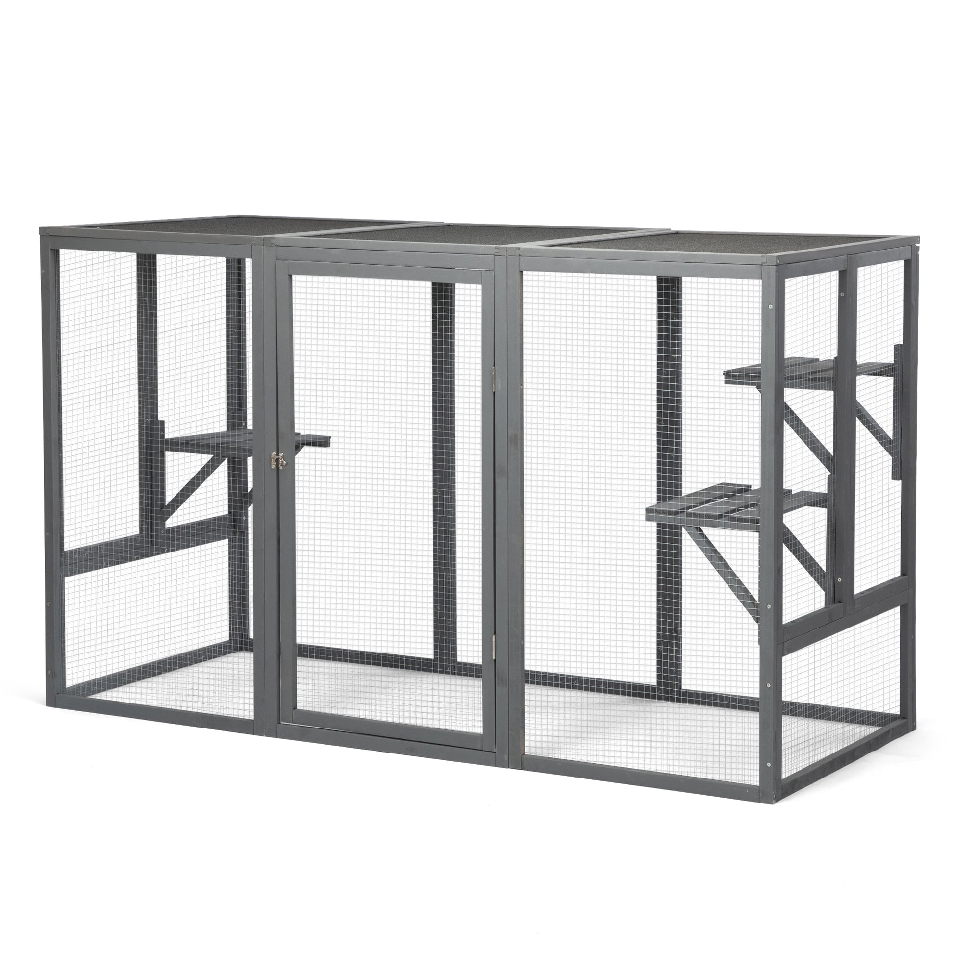 Spacious wooden cat cage with waterproof roof with adjustable pedals suitable - gray black