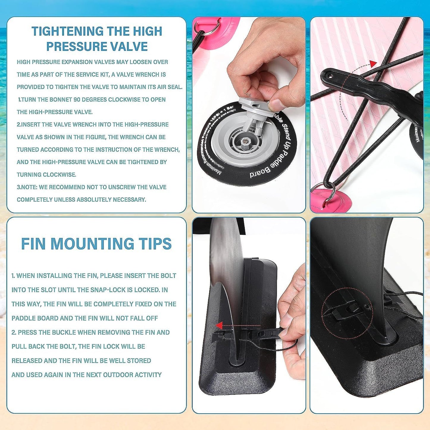 - ?[All-in-1 Accessories]Each paddle board kit includes: 1*inflatable paddle board, 1*3-piece length adjustable floating paddle, 1* removable fin, 1*SUP hand pump,1*safety leash, 2* sticky paddle hangers, 1*mobile phone waterproof bag, 1*repair Kit. In addition, we have a weight-bearing backpack for easy carrying. This complete kit will help you get ready with ease. Take it on a surfing hike, or leave it in the car when you want to explore.