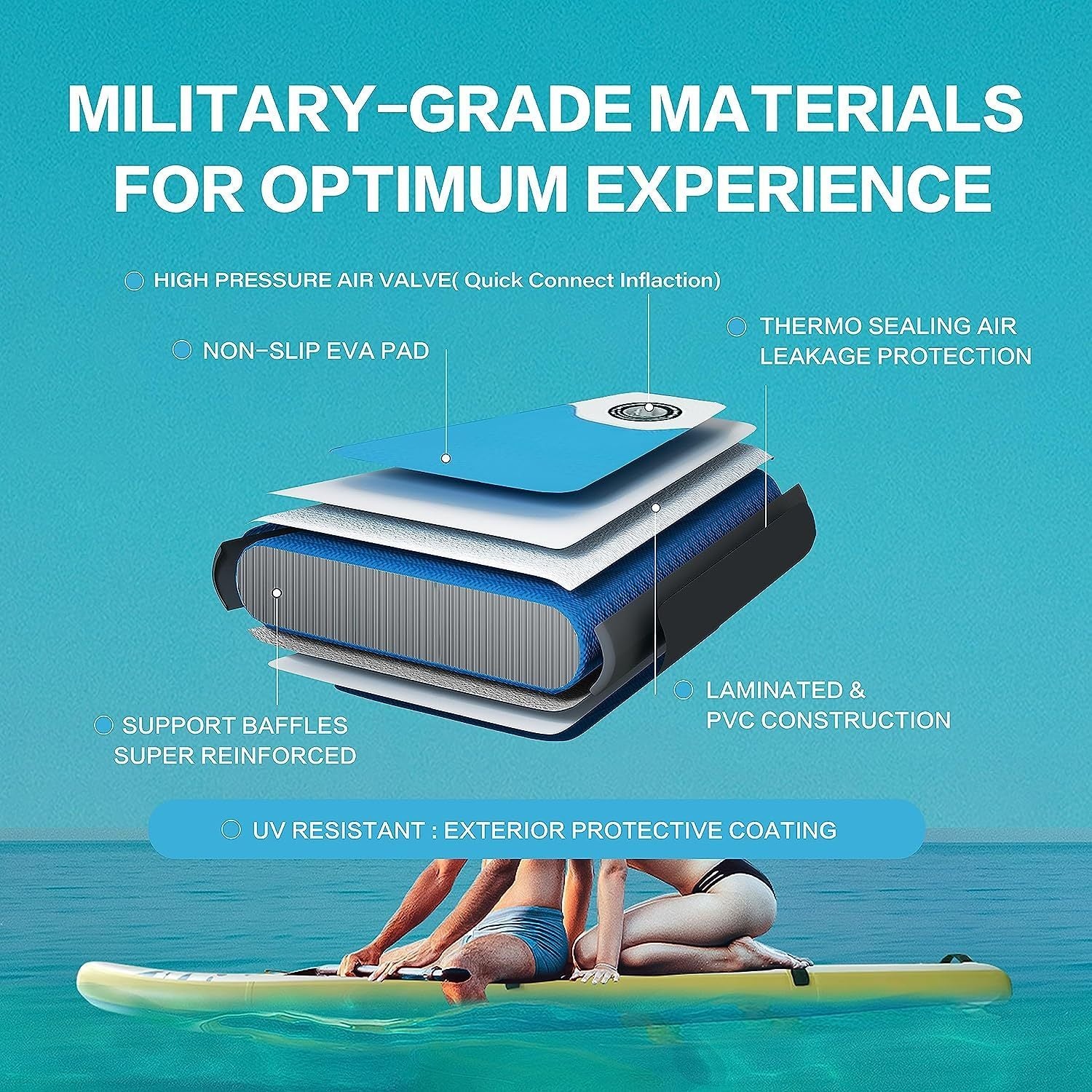 - ?[Excellent 500lbs Weight-bearing Capacity]Our inflatable paddle board is made of upgraded ultra-light military-grade PVC material, lighter than regular materials and high-intensity, which has stronger weight-bearing capacity. Maximum weight capacity: 500lbs. So you can use it with your friends or pets and enjoy surfing.