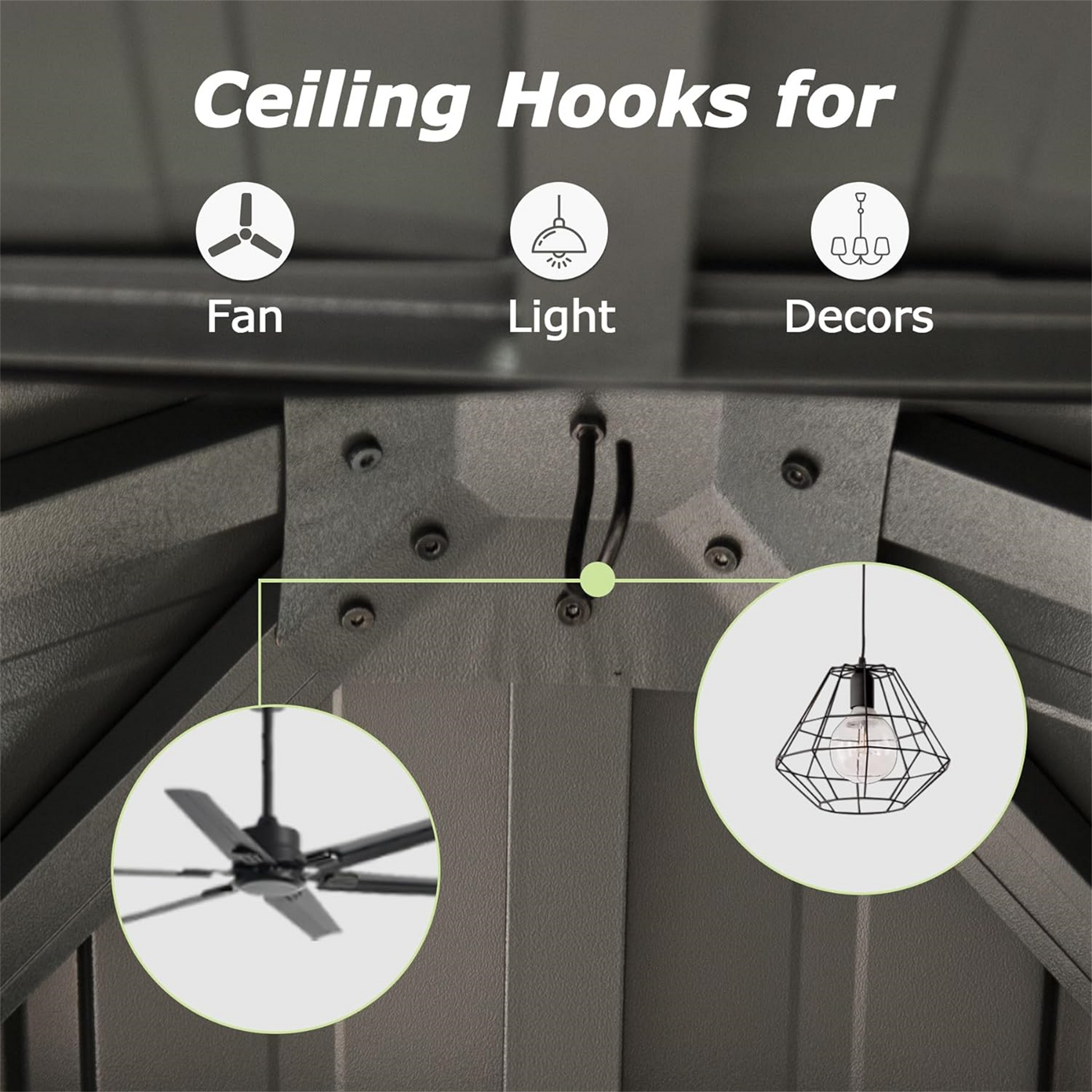 - Double Roof Design- The space between the two roof layers allows air to circulate, creating a ventilation system that helps keep the gazebo cool and comfortable even on hot summer days. Plus, the slope of the roof helps rain and snow to flow down and off the structure, reducing the risk of damage and ensuring a long-lasting, durable roof.