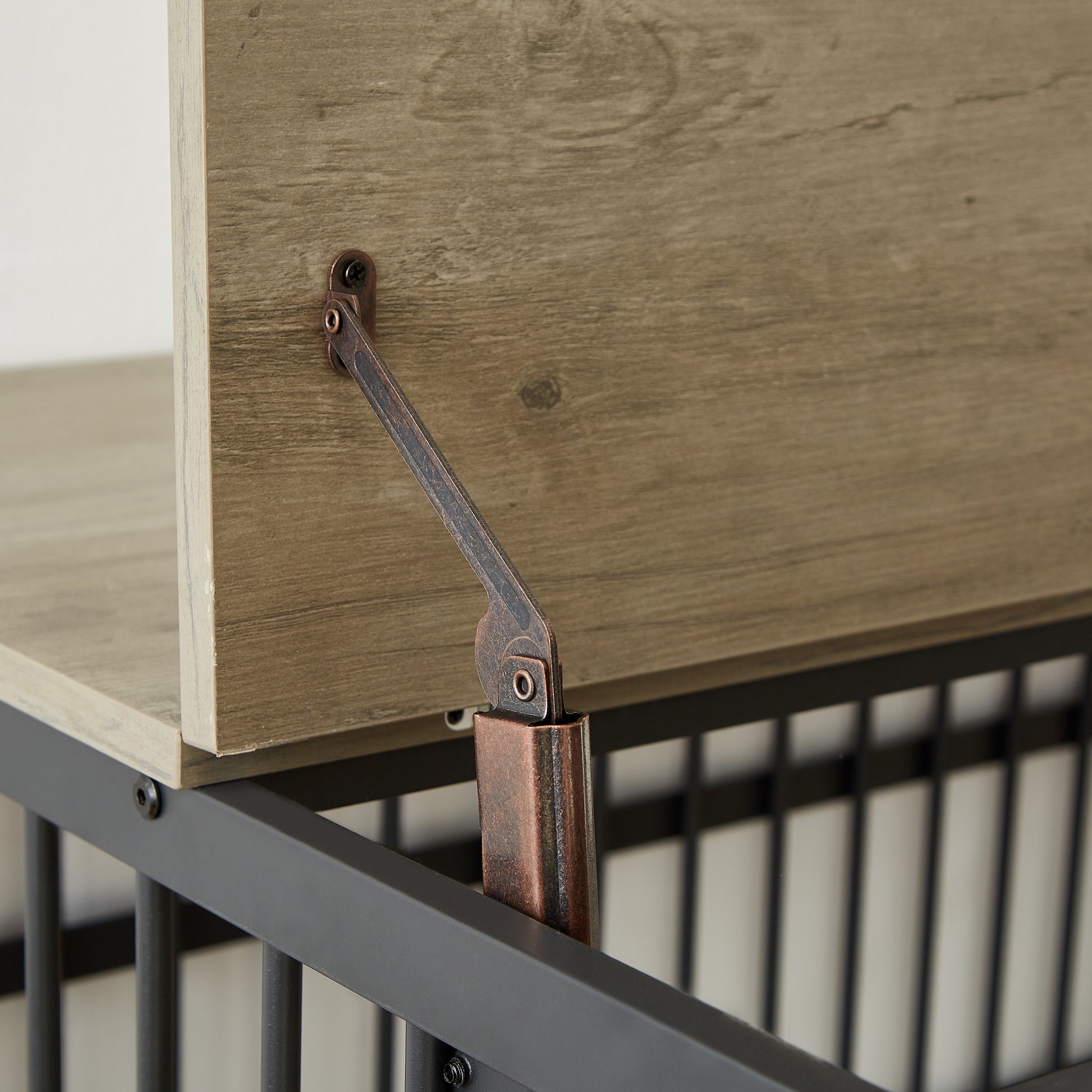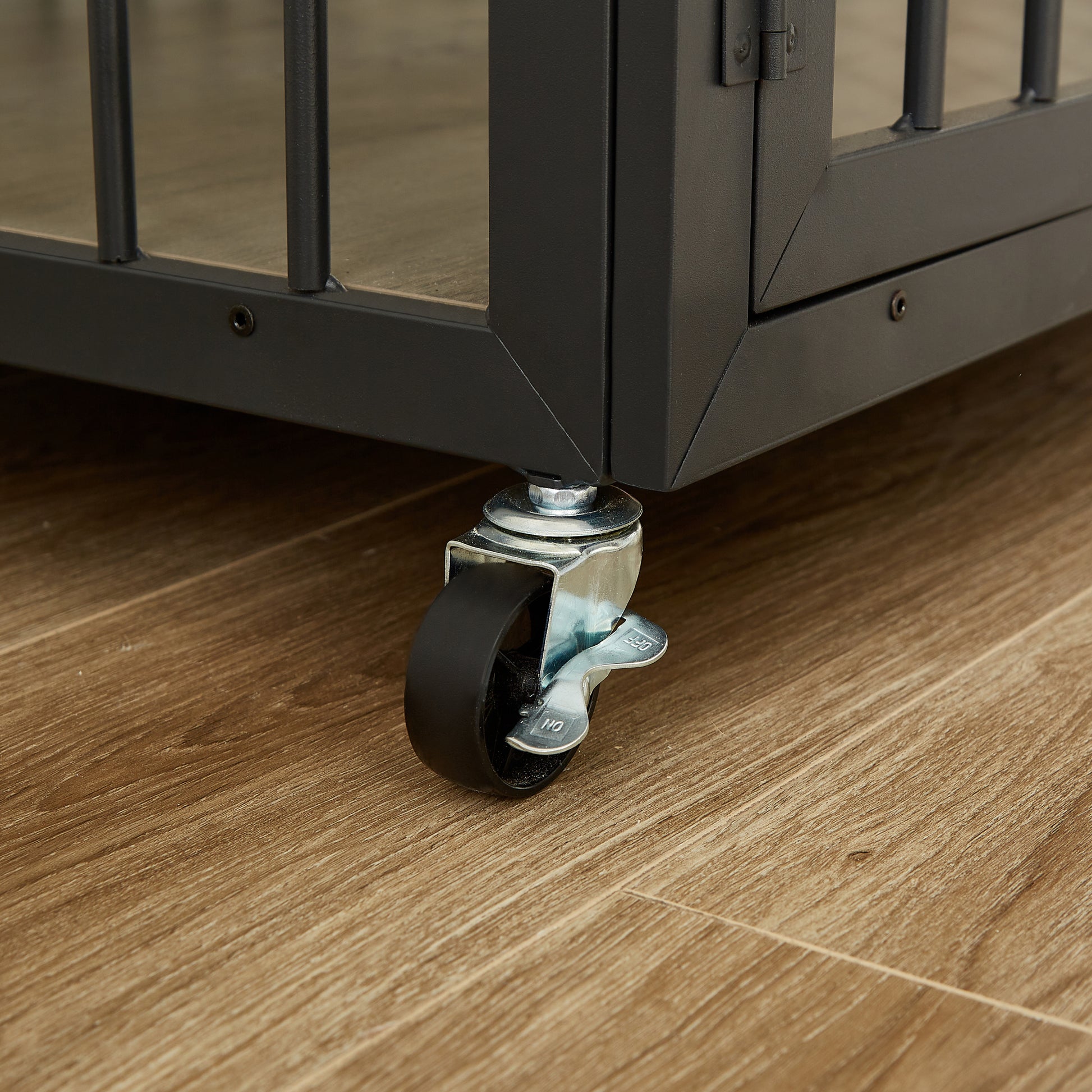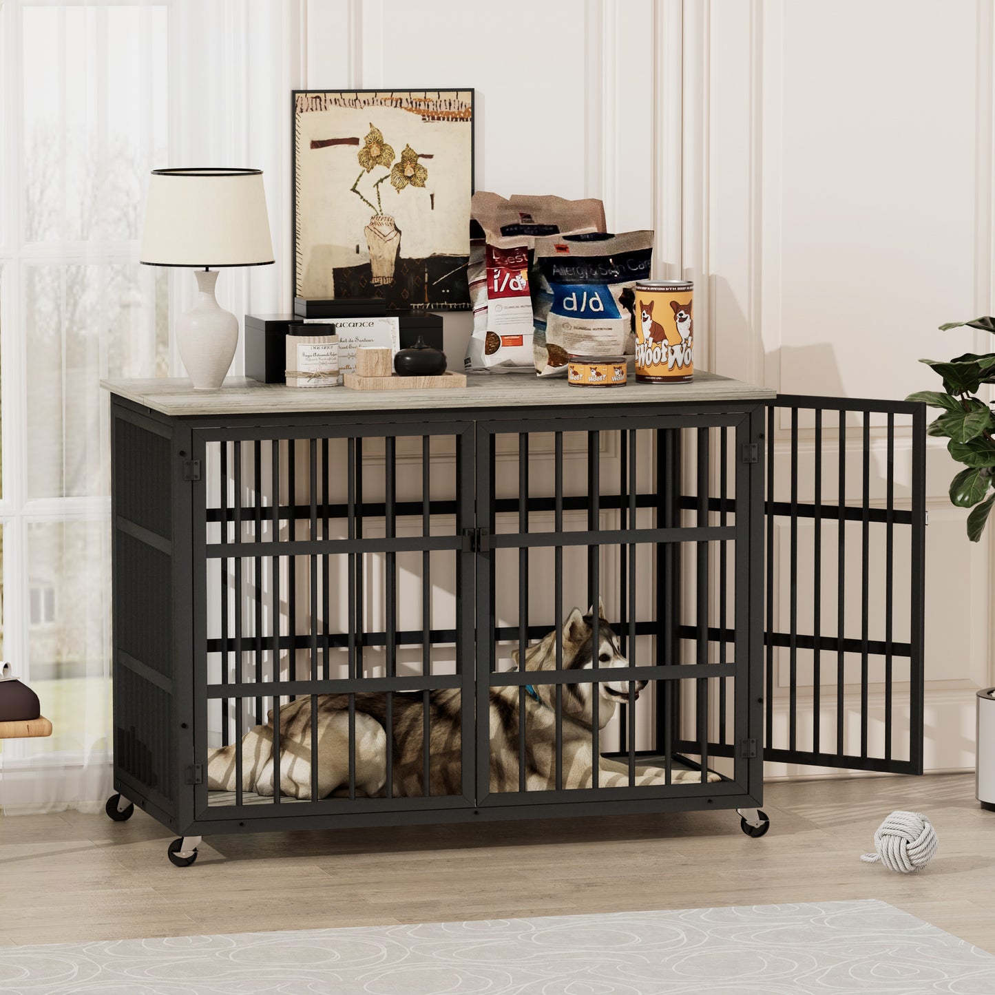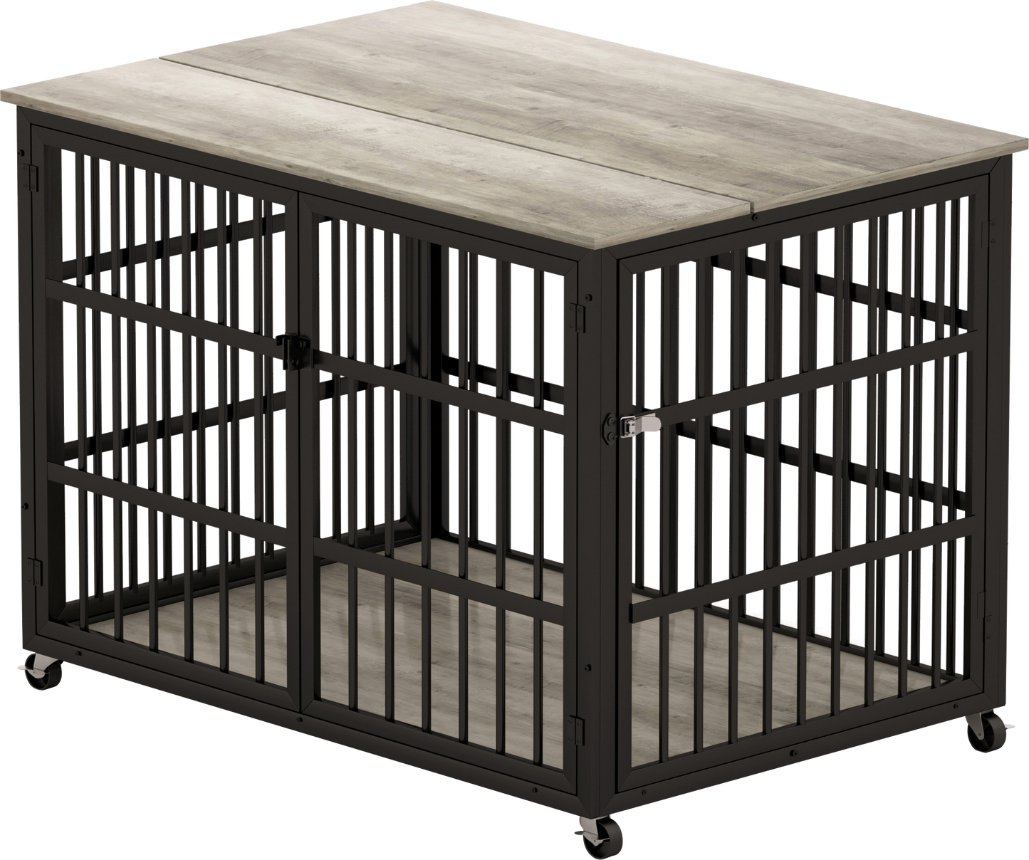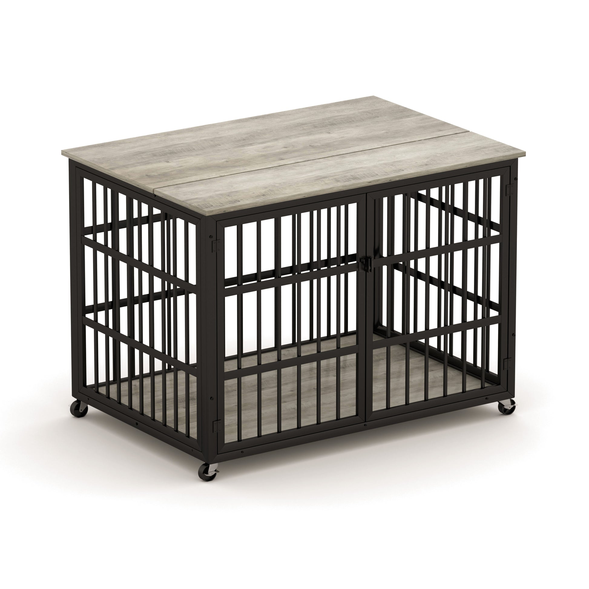 Furniture style dog crate wrought iron frame door with side openings, Grey, 43.3''W x 29.9''D x 33.5''H.